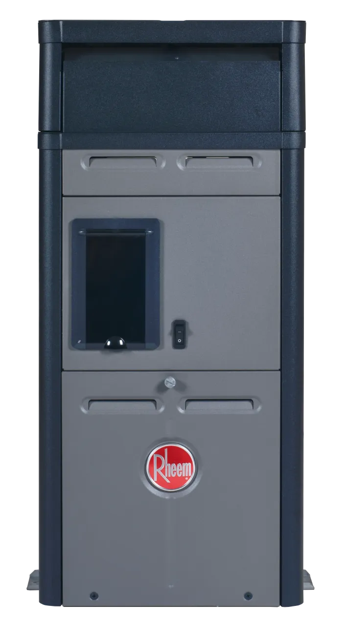 All-Copper-Fin-Tube Heat ExchangerThe fin tubes of the heat exchanger are eachmade from a single piece of extruded copper. This integral-fin designallows maximum heat transfer to be attained and maintained. Rheem alsouses thick stainless steel tube sheets for robust construction and rustfree operation.