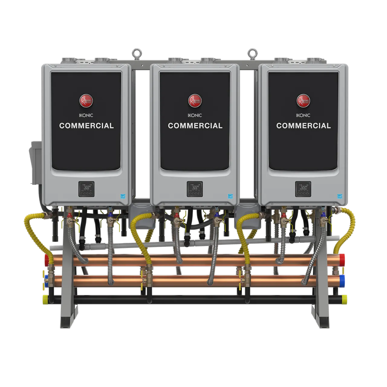 IKONIC Commercial Tankless Wall Hung System- Prebuilt and factory configured rack systems ready to install.