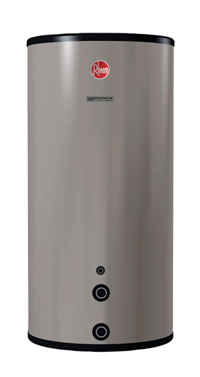 Rheem-Ruud commercial storage tanks are vertical tanks designed for applications that require large quantities of water in short periods of time. When used in tandem with Rheem-Ruud commercial water heating equipment, these storage tanks provide the flexibility needed for many commercial applications. Installed individually, or manifolded, these storage tanks can provide 80% draw capability without an appreciable temperature decrease in single temperature applications.